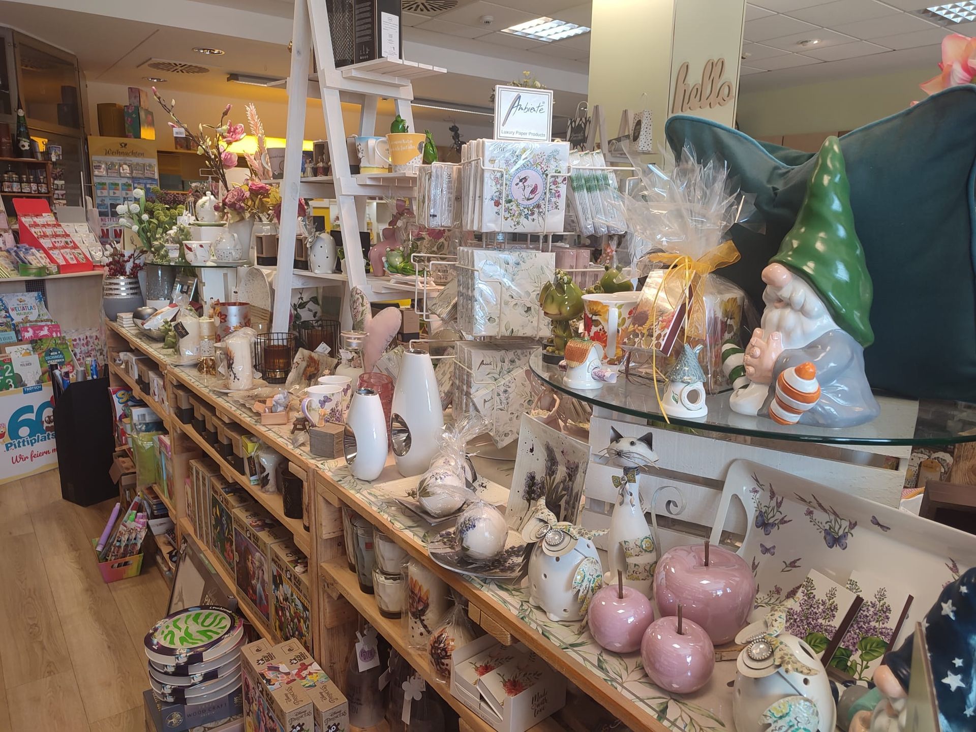 Unser Sortiment umfasst zusätzlich den Verkauf von Dekoartikeln, Weihnachtsartikeln, Karten und Geburtstagskarten.